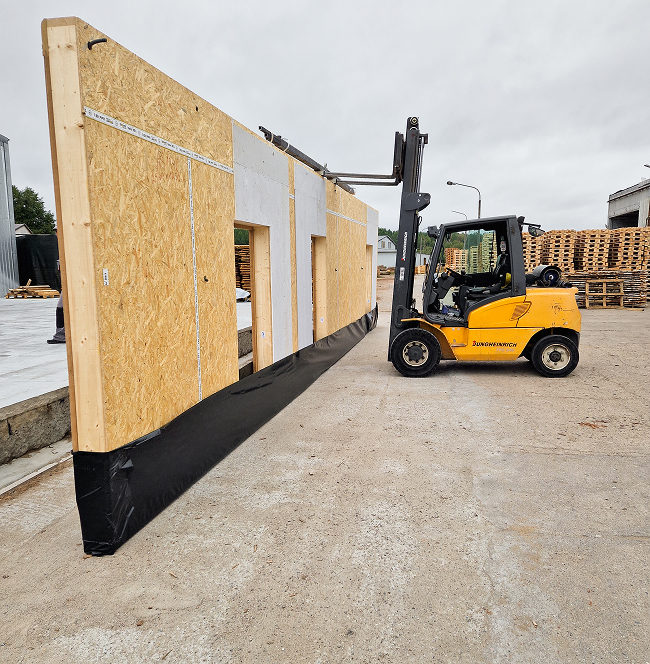 Elementy domu trafiają na Twoją działkę i są składane przez nasz zespół. Montaż konstrukcji trwa zaledwie kilka dni – bez hałasu i mokrych robót.