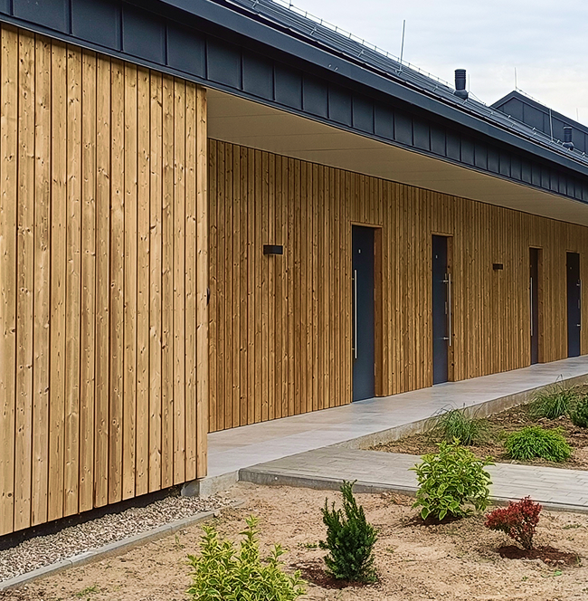 Dom powstaje w naszej hali produkcyjnej – w kontrolowanych warunkach, z najwyższą precyzją. Od konstrukcji po ściany i dach – wszystko zgodnie z projektem.